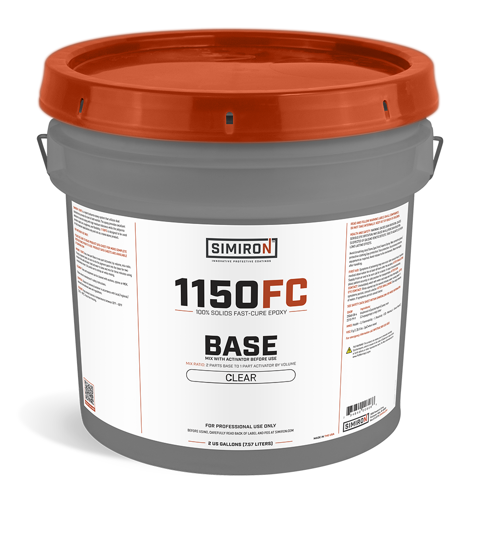 SIMIRON 1150FC is a fast cure 100% solids, two-component, high-build epoxy floor coating that’s designed for applications where heavy-duty protection is required. Simiron 1150FC allows users to achieve a fast return to service flooring system that can be applied at temperatures as low as 32°F (0°C).